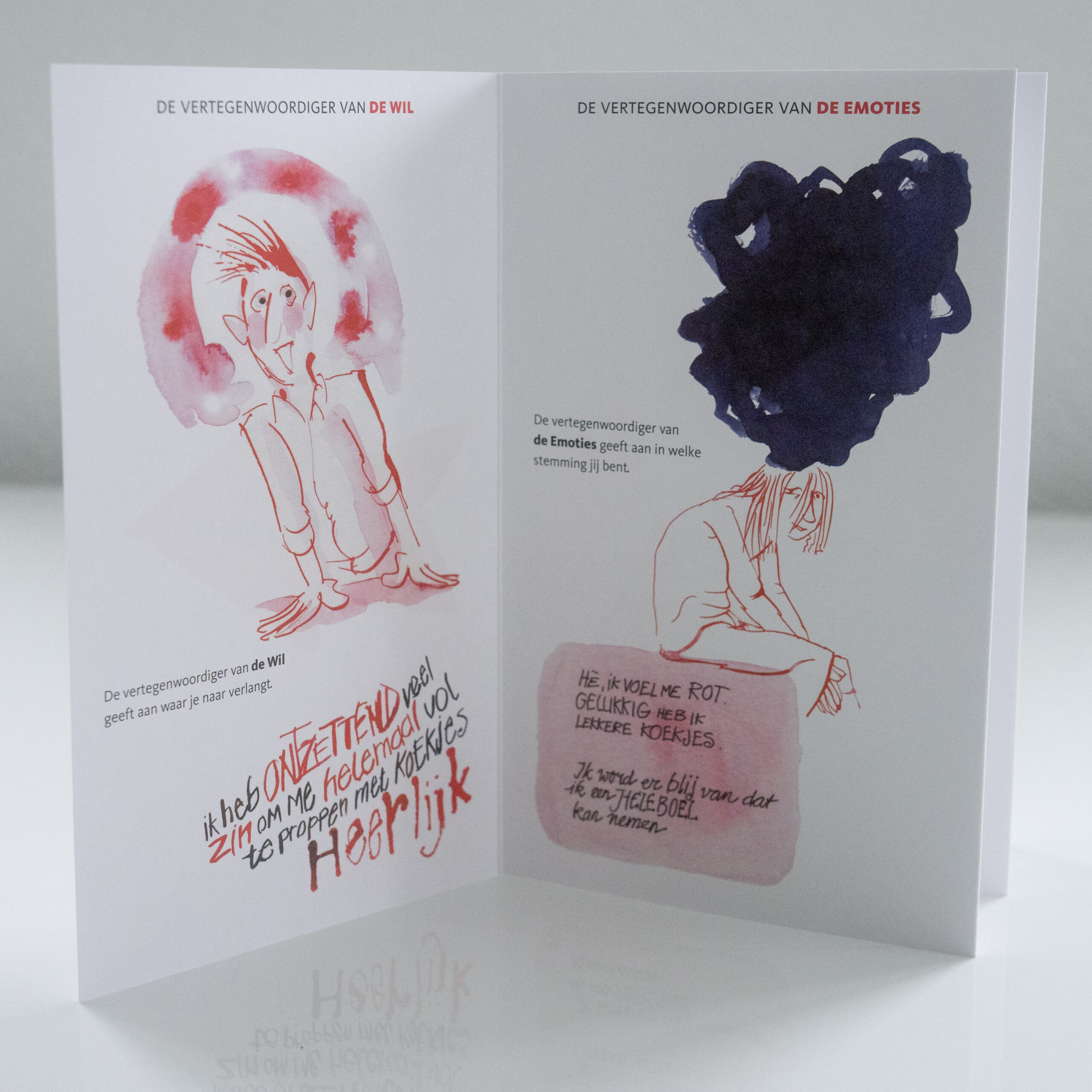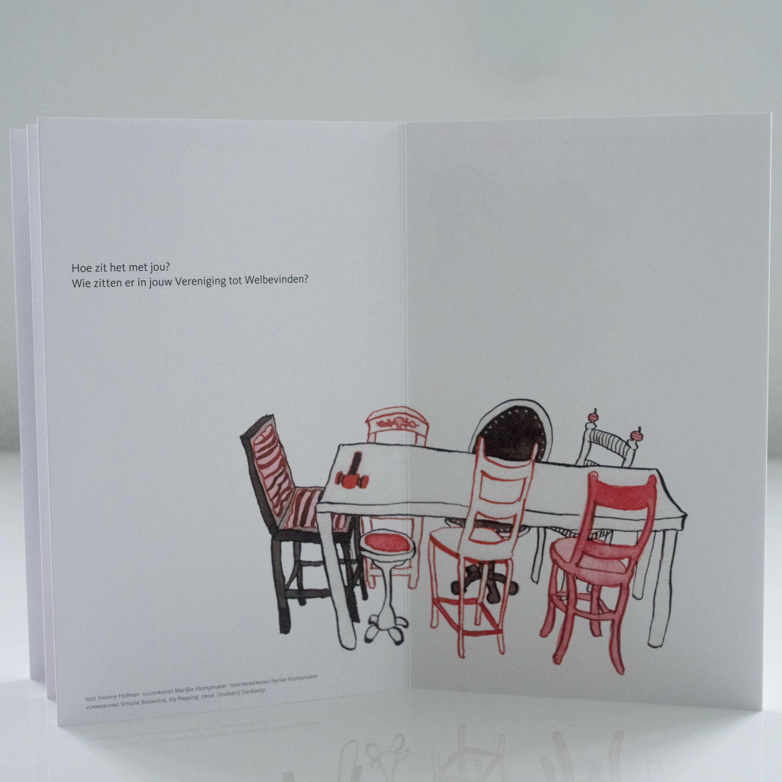 In mijn psychologenpraktijk heb ik het vaak met cliënten over de gesprekjes die we dagelijks met onszelf voeren. Op een dag vroeg ik me af: Wie praten daar eigenlijk met elkaar? Waarom verlopen die gedachtengangen zo chaotisch? Hoe komt het dat we blijven twijfelen? Ik stelde me voor dat er vergaderd werd in ons hoofd. En vervolgens stelde ik me voor wie er aan het vergaderen waren. Zo kwam ik uit op een rondetafelconferentie van de Vereniging tot Welbevinden met een voorzitter en zes vertegenwoordigers.